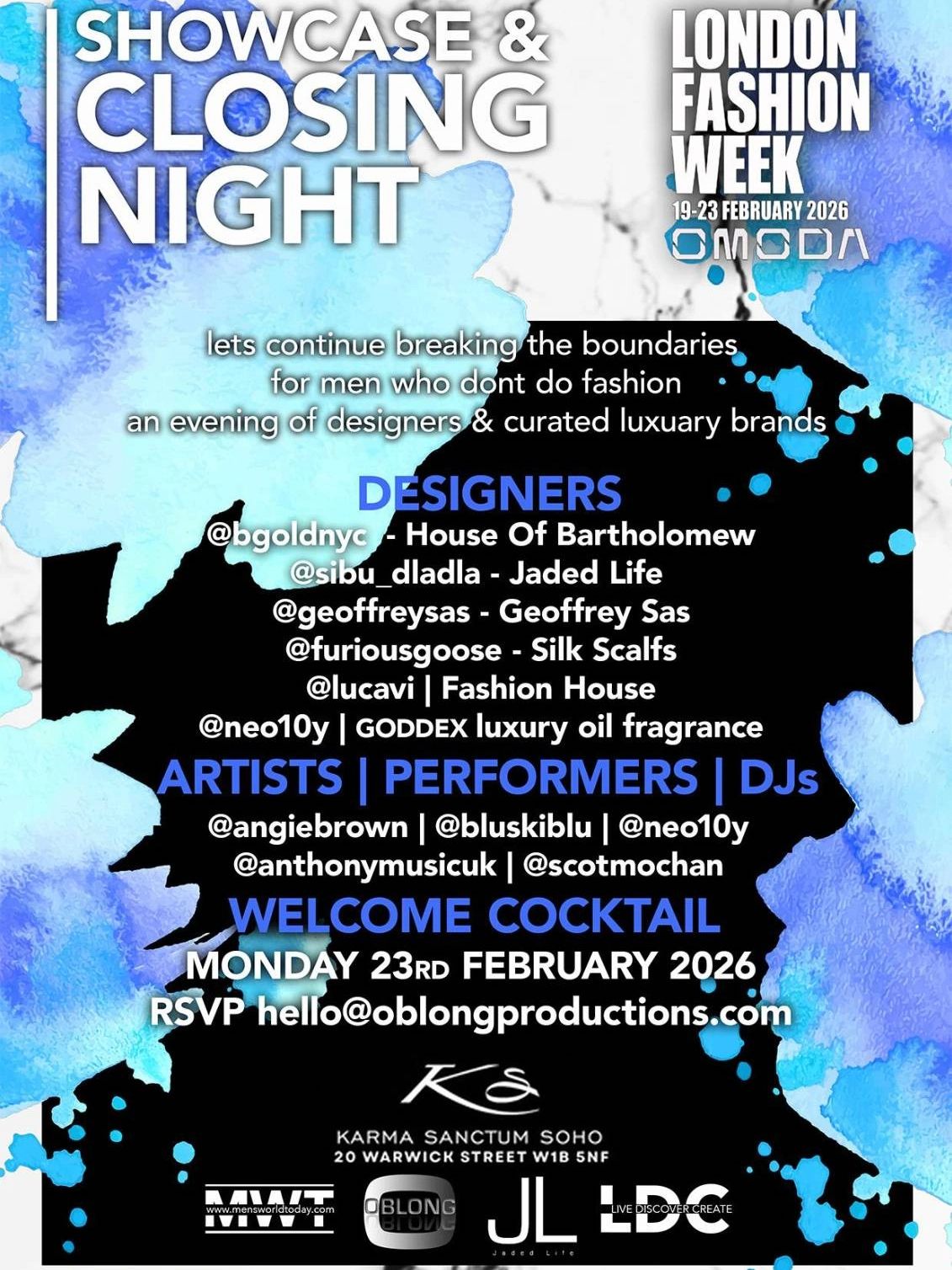 On 23rd February MWT & LDC & OBLONG presented London’s sharpest men’s lifestyle party. As Fashion Week wrapped, we're turned down the runway lights and the up the energy.